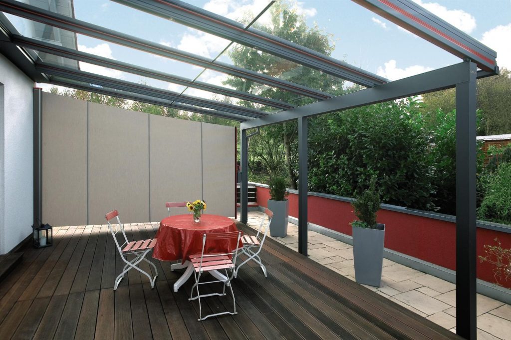 Eine weiteres Highlight bei den Seiten-Markisen ist die Kombination aus Durchsicht und Sichtschutz.