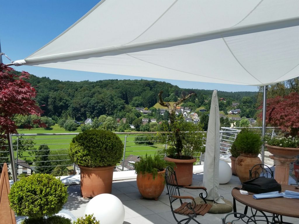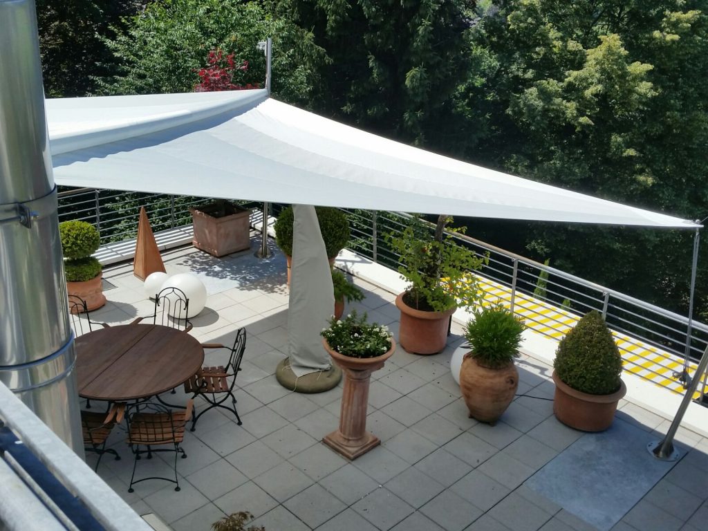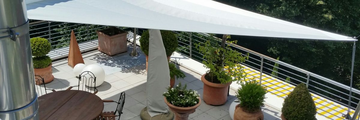 Der Kunde dieses Bauvorhabens kam mit dem Wunsch auf uns zu, seine windanfällige Dachterrasse so gut wie möglich zu beschatten sowie vor Regen zu schützen. Nach intensiver Beratung kamen wir zu der perfekten Lösung.